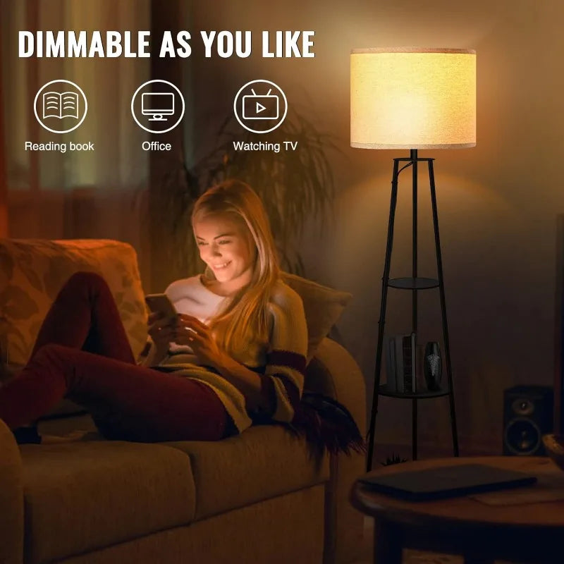 - 3-level Dimmable Brightness: The E26 socket of this tall lamp has a high heat dissipation capacity to assure longer lifespan. Besides, this floor lamp with shelves has three light brightness modes: low-medium-high, which is convenient for any scene, like reading, working or daily use. (3-level dimmable Bulb is not included, Max 100W)